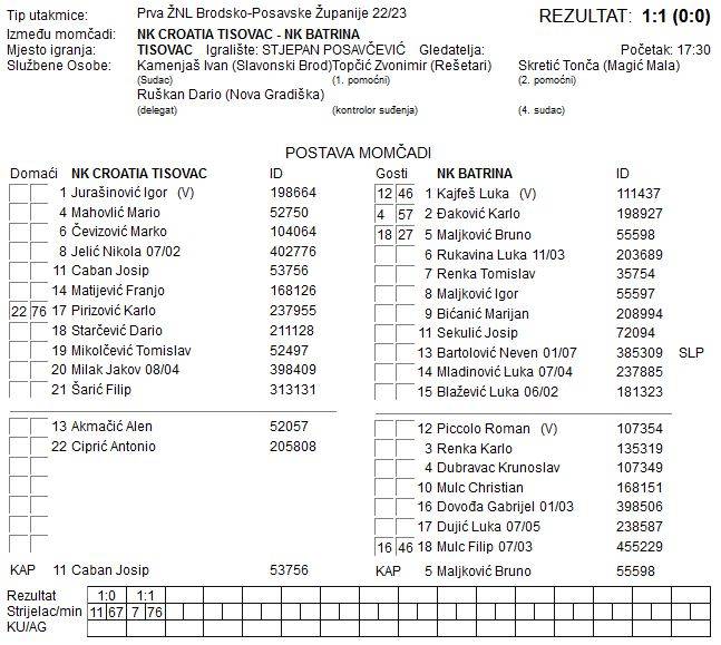 U Tisovcu nije bilo pogodaka sve do 67. minute kada Josip Caban dovodi Croatiju u vodstvo, a na odgovor Batrine čekalo se devet minuta kada je uspostavit će se konačnih 1:1 postavio Tomislav Renka u 76. minuti susreta.