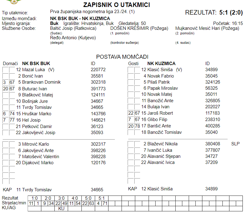 BSK je na domaćem terenu deklasirao Kuzmicu koja danas nije imala rješenja za raspoložene Josipove pulene. Tvrdy i Jakovljević sa po 2 pogotka najviše su se istakli u ovom susretu, dok je jedan pogodak dodao i Blašković. Gosti su dvadesetak minuta prije kraja uspjeli doći do pogotka, ali to je bilo kasno za bilo kakav preokret.