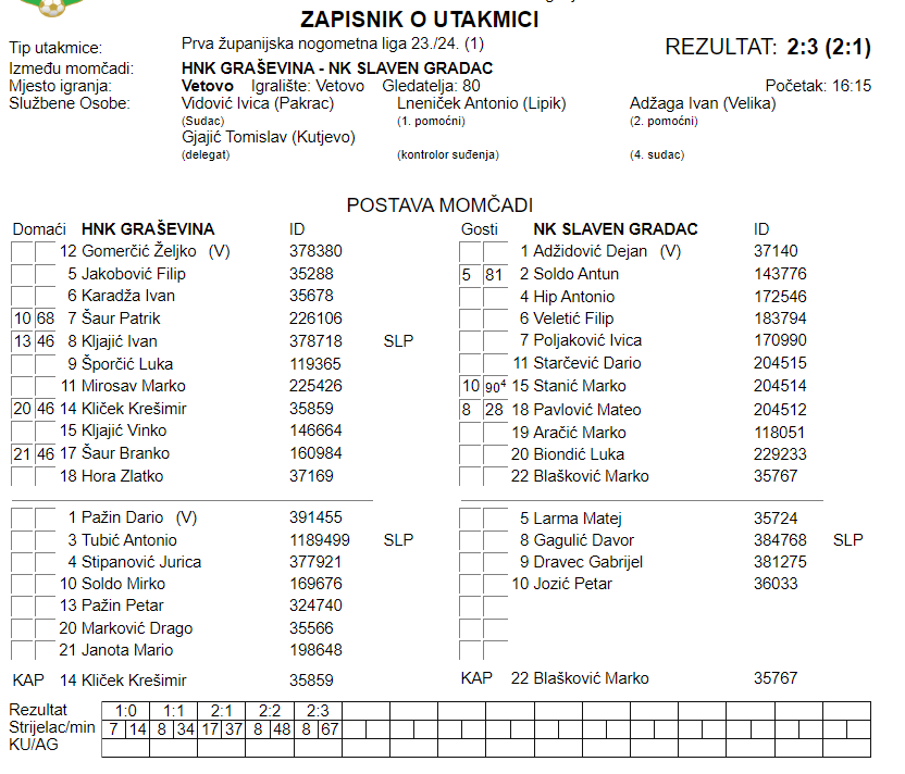 GRAŠEVINA – SLAVEN GRADAC 2:3