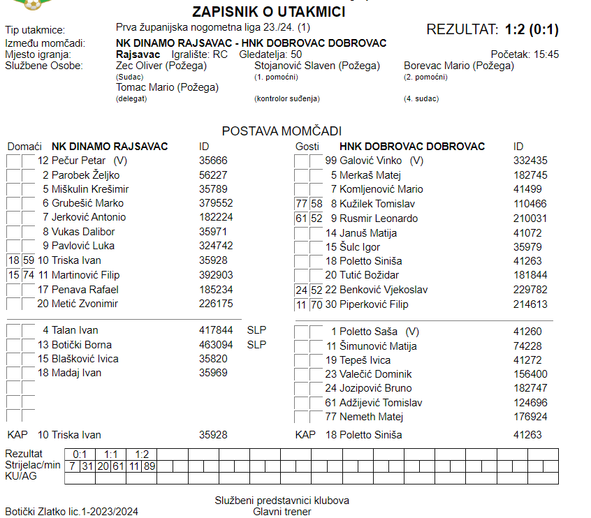 NK DINAMO RAJSAVAC – HNK DOBROVAC 1:2