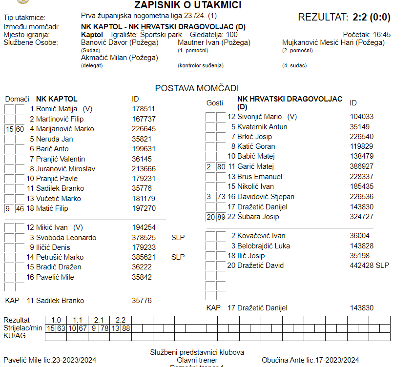 NK KAPTOL – NK HRVATSKI DRAGOVOLJAC 2:2