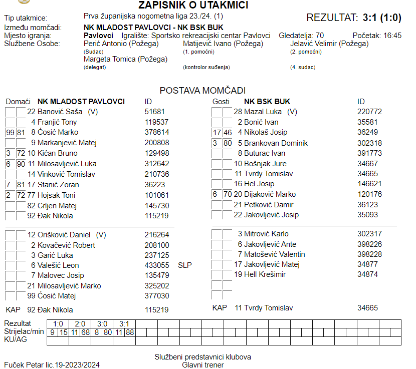 NK MLADOST PAVLOVCI – NK BSK BUK 3:1