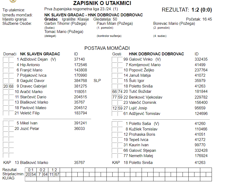NK SLAVEN GRADAC – HNK DOBROVAC 1:2