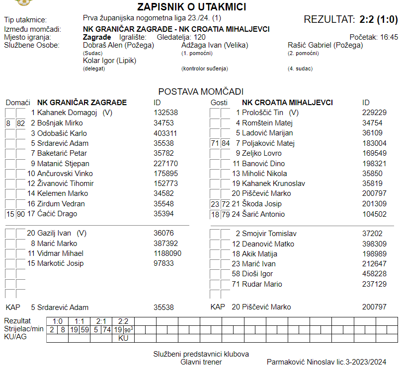 NK GRANIČAR ZAGRAĐE – NK CROATIA MIHALJEVCI 2:2