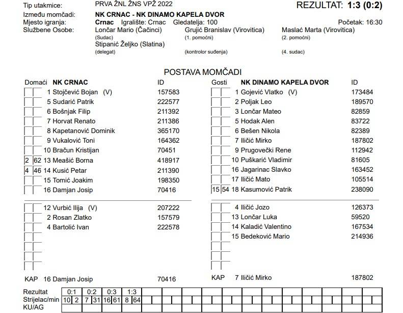 NK CRNAC – NK DINAMO KAPELA DVOR 1:3