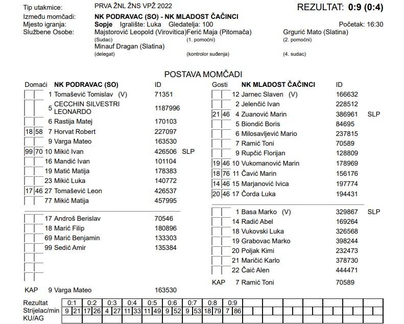 NK PODRAVAC (So) – NK MLADOST ČAČINCI 0:9