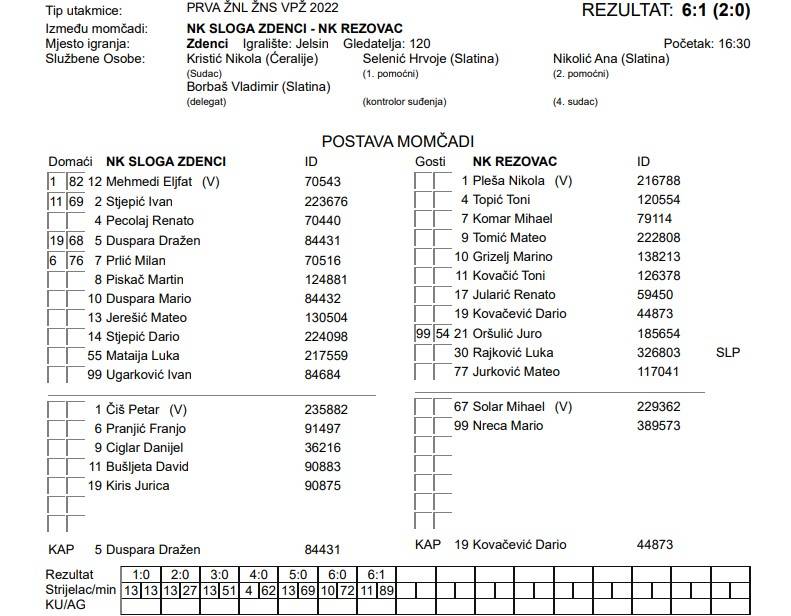 NK SLOGA ZDENCI – NK REZOVAC 6:1