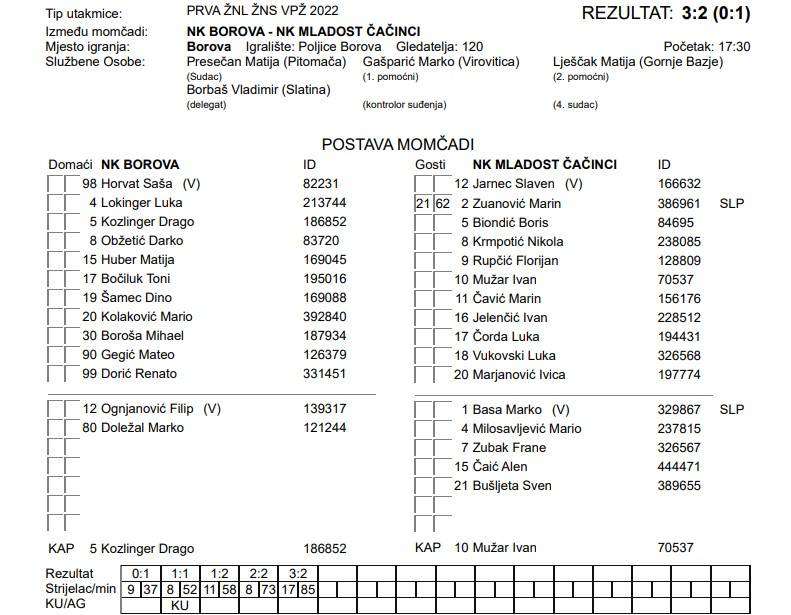 NK BOROVA – NK MLADOST ČAČINCI 2:3