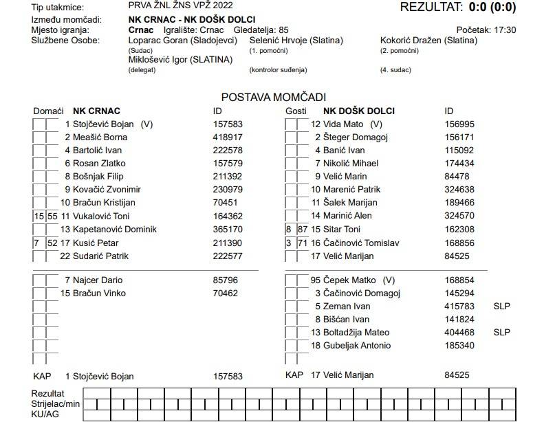 NK CRNAC – NK DOŠK DOLCI 0:0