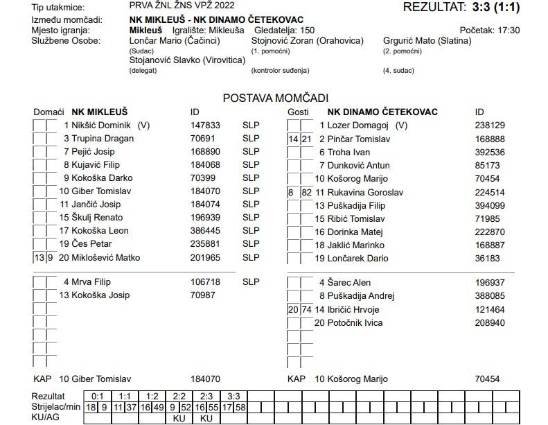 NK MIKLEUŠ – NK DINAMO ČETEKOVAC 3:3