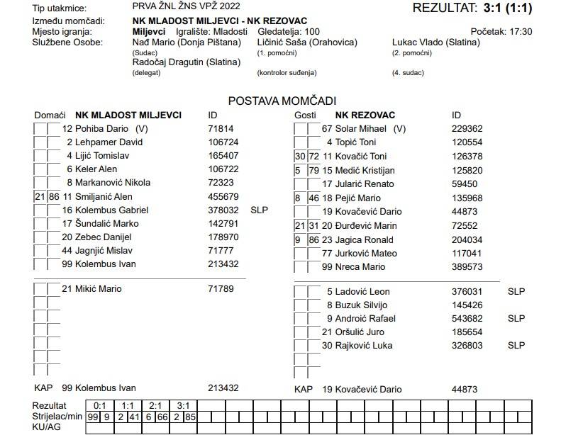 NK MLADOST MILJEVCI – NK REZOVAC 3:1