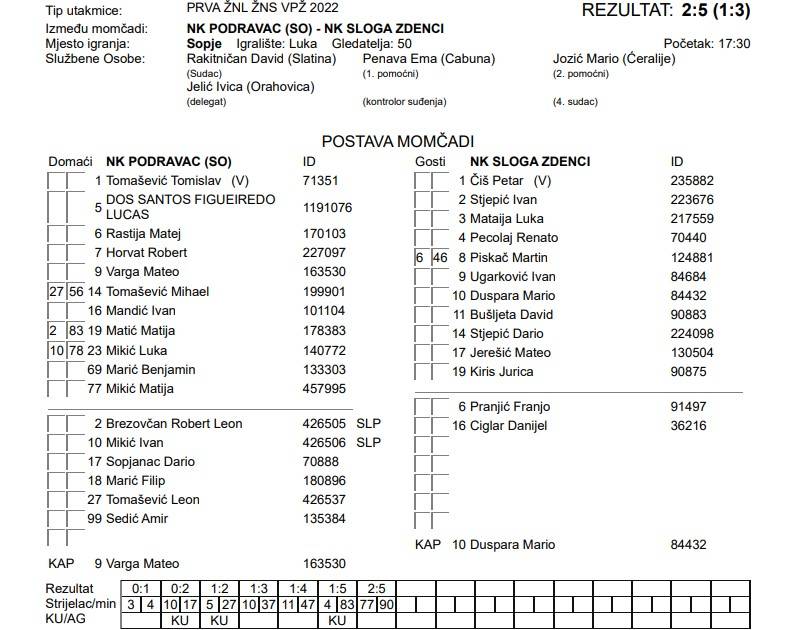 NK PODRAVAC (So) – NK SLOGA ZDENCI 2:5