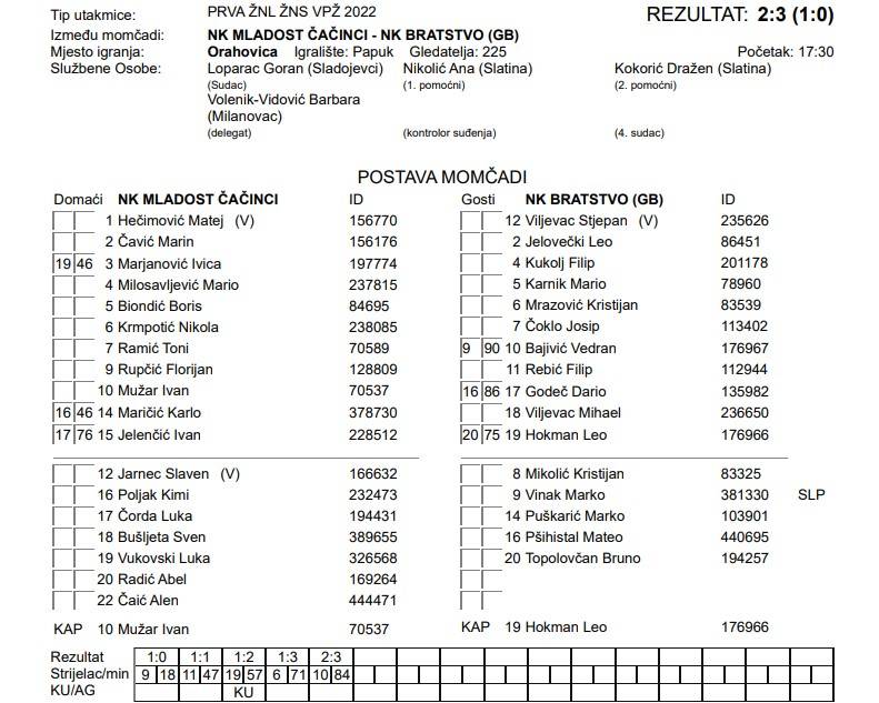 NK MLADOST ČAČINCI – NK BRATSTVO (GB) 2:3