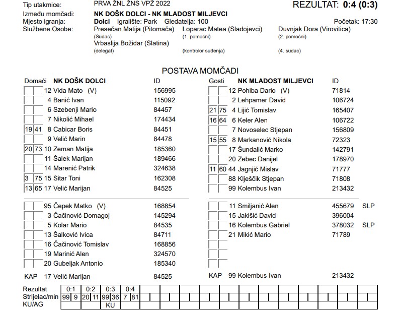 NK DOŠK DOLCI – NK MLADOST MILJEVCI 0:4