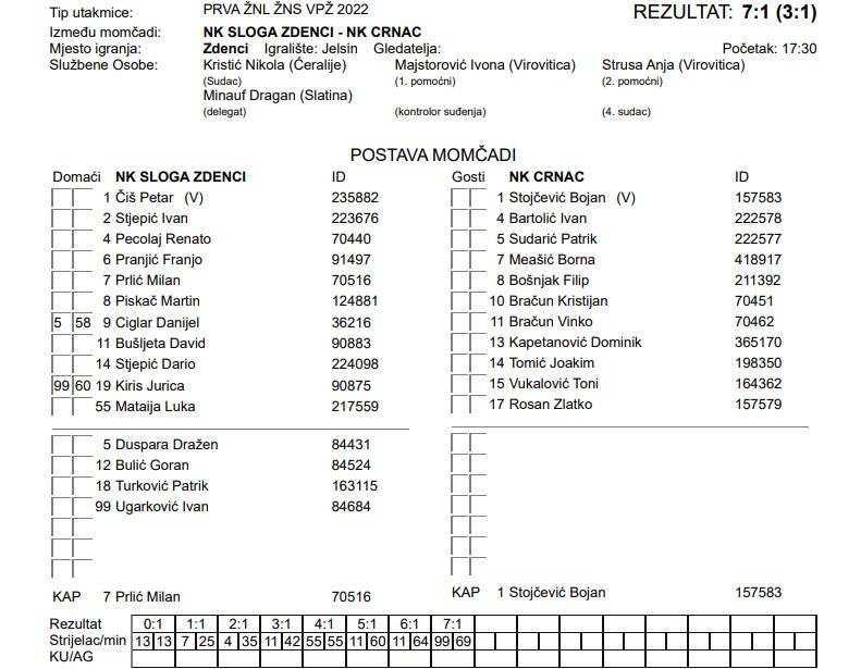 NK SLOGA ZDENCI – NK CRNAC 7:1