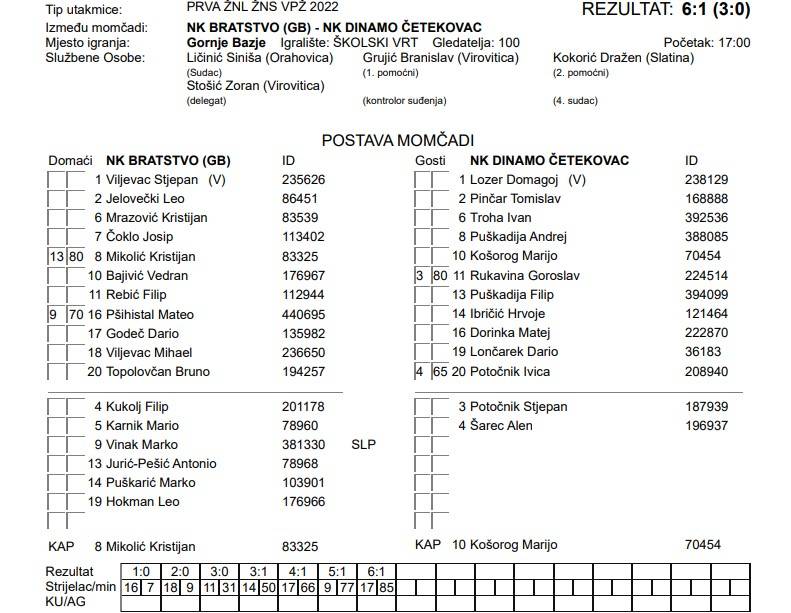 U subotu se krenulo igrati 23. kolo 1. ŽNL VPŽ. Dvobojem su ga otvorili igrači Bratstva i Dinamo Četekovca u Gornjem Bazju. Na domaćem terenu Bratstvo je bilo i više nego moćno.