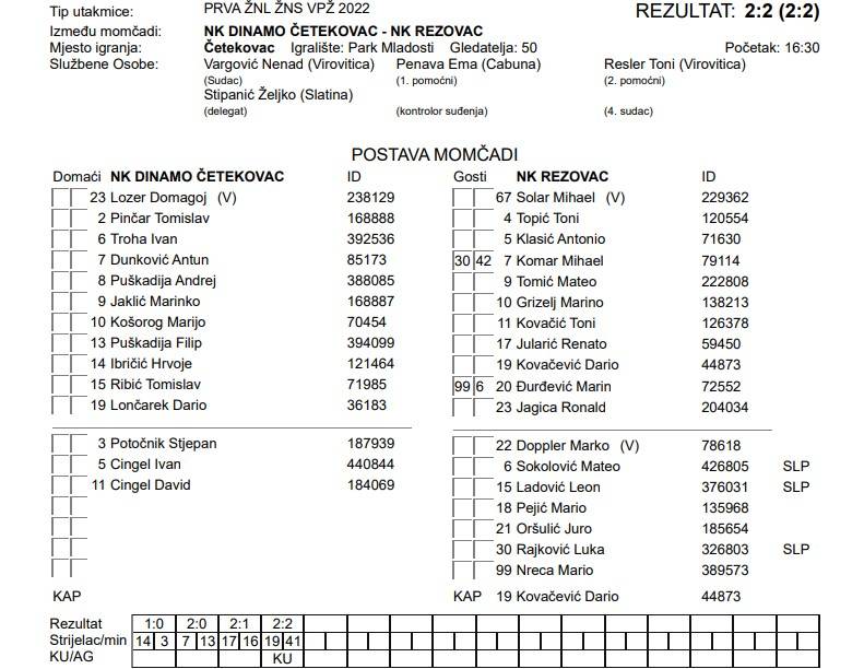 NK DINAMO ČETEKOVAC – NK REZOVAC 2:2