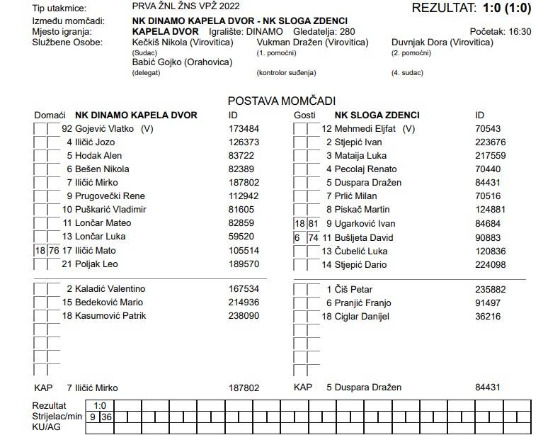 NK DINAMO KAPELA DVOR – NK SLOGA ZDENCI 1:0