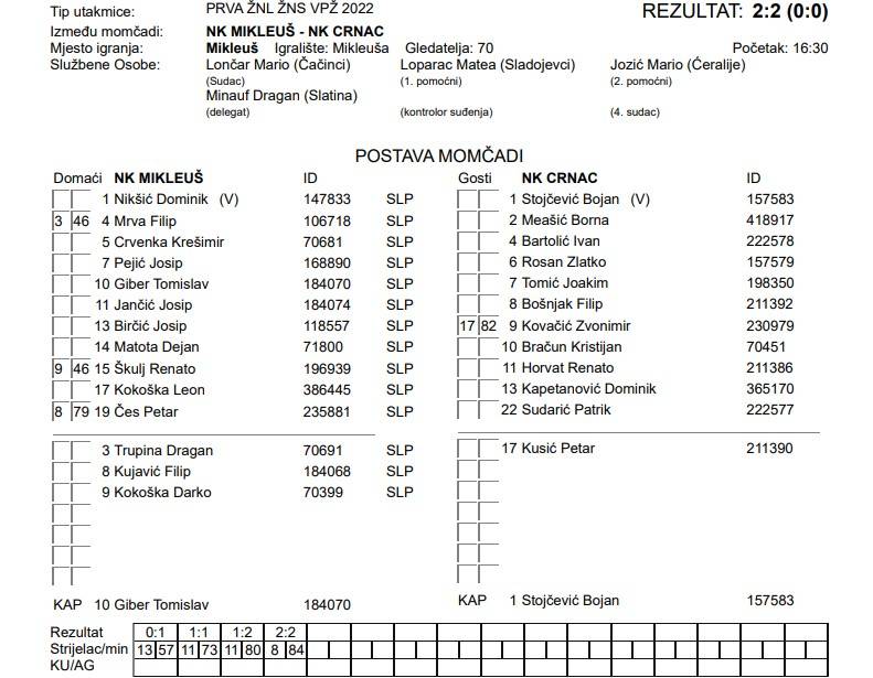 Vrlo dobra utakmica i zaslužena podjela bodova u Mikleušu. Nakon mirnog prvog poluvremena, u drugom su se stvari rasplamsale. Gosti su dvaput vodili, no oba puta su se domaćini vratili. Za vodstvo je zabio Dominik Kapetanović u 57. minuti susreta. Izjednačio je Josip Jančić u 73., a sedam minuta kasnije novo vodstvo donio je Renato Horvat. Ekspresnim golom Filip Kujavića u 84. minuti Mikleuš je stigao do novog izjednačenja i postavljanja konačnog rezultata utakmice.