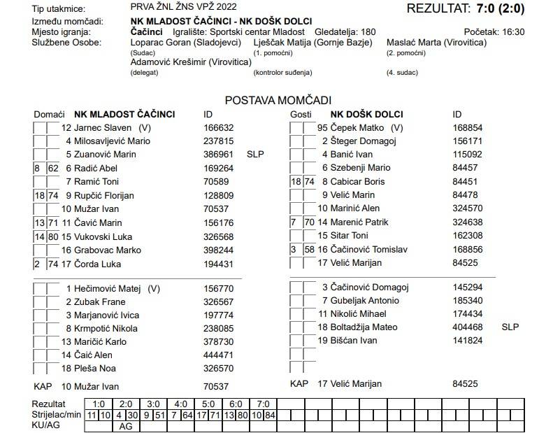 NK MLADOST ČAČINCI – NK DOŠK DOLCI 7:0