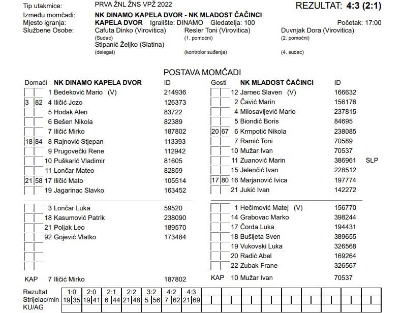 NK DINAMO KAPELA DVOR – NK MLADOST ČAČINCI 4:3