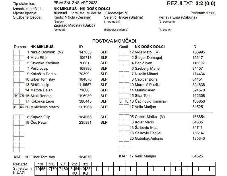 NK MIKLEUŠ – NK DOŠK DOLCI 3:2