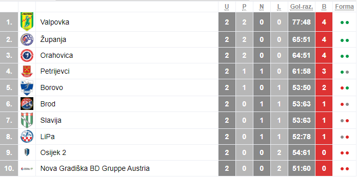 Županja je na domaćem terenu svladala Osijek 2 rezultatom 30:26. Najviše su zabijali Šokić i Tomašević sa 7 golova kod domaćina i odlični Novokmet sa 10 pogodaka kod gostiju. Orahovica je vrlo lako na domaćem terenu svladala Brod 33:23. Kod pobjednika najviše je zabio Kiš, čak 9 golova, a goste je predvodio Sarić sa 6. Valpovka je ostvarila jedinu ovotjednu gostujuću pobjedu, u Borovu je završilo 24:27 za goste. Edl je zabio 6 pogodaka za domaćine, dok je razigrane goste predvodio Vukušić sa 8.