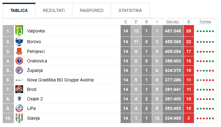 Nova Gradiška BD Gruppe Austria na gostovanju s 31:27 svladala je Osijek 2 i tako došla do petog ovosezonskog slavlja. Do pete pobjede došli su i rukometaši Broda koji su na gostovanju svladali Slaviju 22:27. U tom susretu po deset pogodaka postigli su kod domaćina Filip Mandić te kod gostiju Josip Sarić. Četvrtu ovosezonsku pobjedu obilježili su rukometaši LiPe koji su na gostovanju kod Orahovice slavili s plus šest, odnosno konačnih 31:37. Marin Poljak kod Orahovice postigao je jedanaest pogodaka, dok je prvi strijelac susreta gostujući Andrija Krucki s dvanaest.