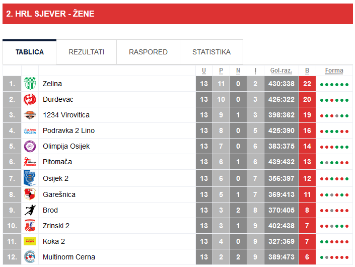 Do četvrte prvenstvene pobjede stigla je ekipa Koka 2 koja je na gostovanju s 32:26 svladala četvrtoplasiranu Podravku 2 Lino. Kod domaćih rukometašica najefikasnija je bila Jana Miklić koja je mrežu protivnica tresla sedam puta, dok je gošće do pobjede predvodila Sara Golub s čak četrnaest pogodaka!