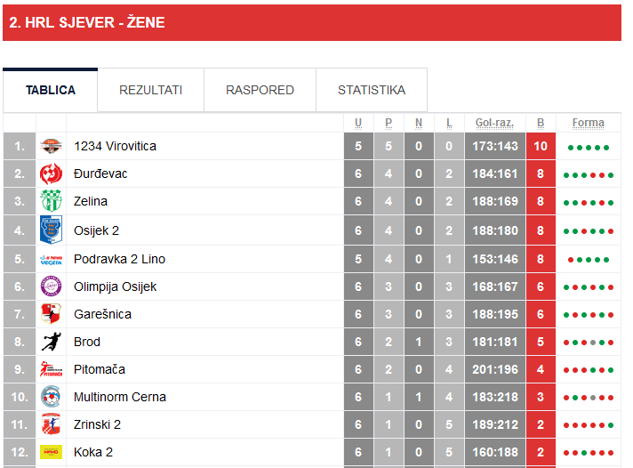 Susret između ekipa s vrha ljestvice neporažene 1234 Virovitice i drugoplasirane Podravke 2 Lino bit će odigran 10. 12.