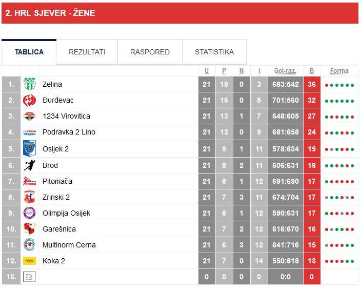 Odigrano je svih šest susreta dvadeset i prvog kola 2. HRL Sjever u ženskoj konkurenciji! Pitomača je u četvrtak uvjerljivo slavila nad Podravkom 2, u subotu su u iznimno bitnom susretu za ostanak bodove podijelile Multinorm Cerna i Zrinski, dok je do osme pobjede stigla Olimpija! Nedjeljni dio programa svojim su pobjedama zatvorile rukometašice Broda, Đurđevca i Virovitice!