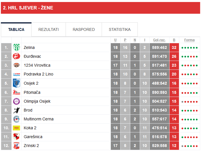 Osamnaesto kolo 2. HRL Sjever za žene donijelo je uvjerljivo slavlje lidera Zeline nad Podravkom 42:27, dok je Đurđevac u svom duplom programu za vikend obilježio dvije pobjede nad Multinorm Cernom i Podravkom 2 Lino!