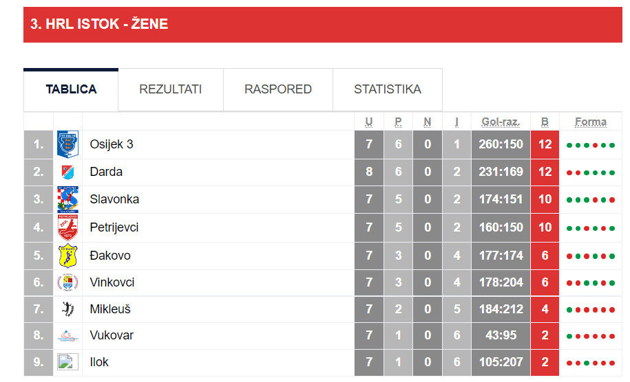 U derbiju kola Slavonka je na domaćem parketu došla do svoje pete pobjede iz sedam susreta nanijevši drugi poraz iz osam susreta rukometašicama Darde s 26:19! Marinela Starčević sa sedam pogodaka bila je najefikasniji pojedinac kod Slavonke, dok je Nika Vlašić kod gošći postigla pogodak manje, ukupno šest.