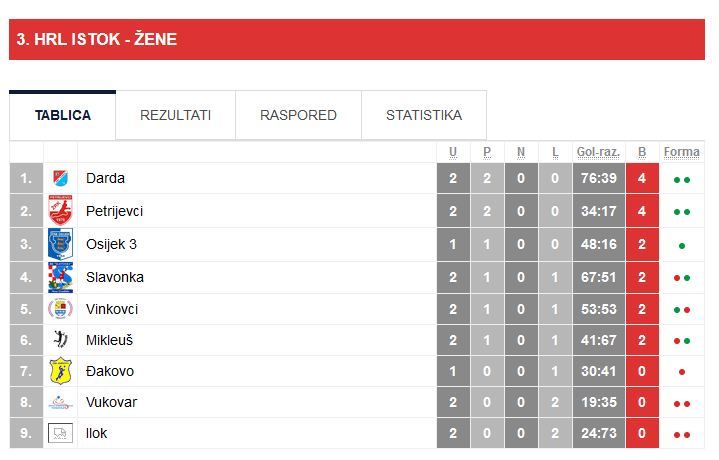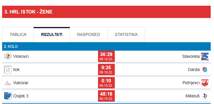 Drugo kolo uzbuđenja u 3. HRL istok u ženskoj konkurenciji donio je gostovanja svih ekipa koje su u prvom kolu obilježile pobjede. Osijek 3 je došao do najuvjerljivije pobjede sa čak 48:16, dok je Darda s 35:9 slavila nad momčadi Iloka. Vinkovci su u nedjeljnom programu slavili nad Slavonkom 36:29!
