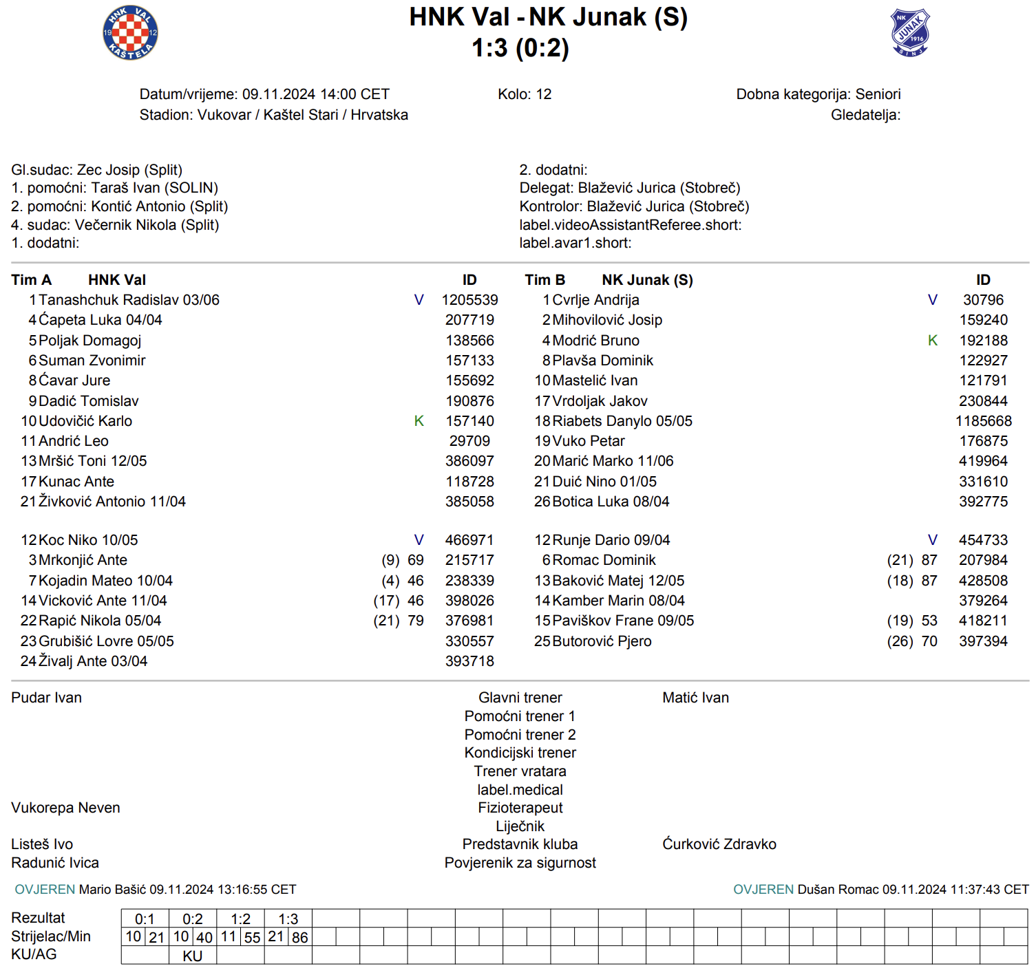 Junak je slavio protiv domaćeg Vala s uvjerljivih 1:3 i iznenadio domaćina. Ivan Mastelić donio je gostima prednost s dva pogotka u 21. i 40. minuti, dok je Leo Andrić smanjio za domaćine u 55. minuti. Nino Duić je u 86. minuti postavio konačnih 1:3, osiguravši pobjedu za svoju momčad. Junak se ovom pobjedom približio sredini tablice.