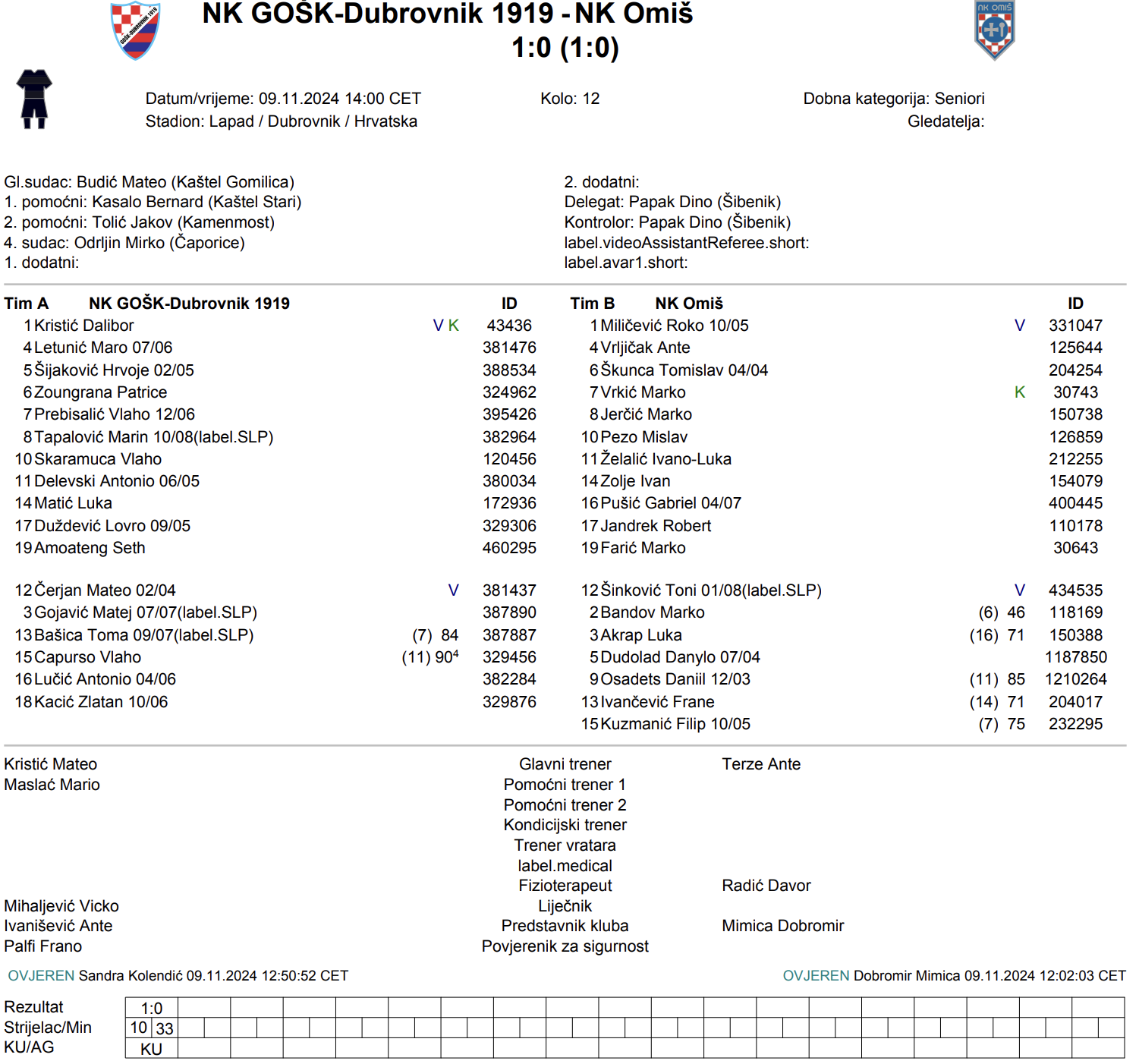 GOŠK Dubrovnik ostvario je minimalnu pobjedu nad Omišem rezultatom 1:0 i došao do vrlo važna tri boda. Strijelac jedinog pogotka bio je Vlaho Skaramuca u 33. minuti. Ovim rezultatom Dubrovčani su ostvarili bitne bodove da se približe sredini. tablice, dok Omiš i dalje traži formu.
