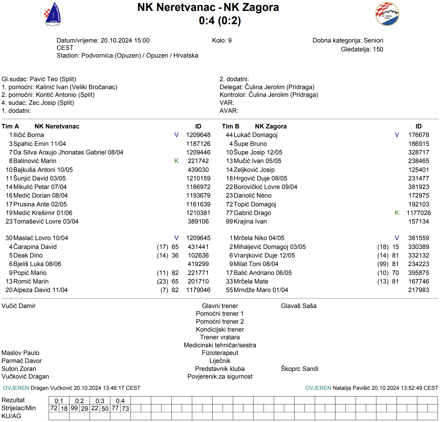 Zagora je bila uvjerljiva u Opuzenu. Četiri različita strijelca postigli su golove za Zagoru: Domagoj Topić u 18., Ivan Krajina u 29., Lovre Borovičkić u 50., i Drago Gabrić u 73. minuti. Vrlo bitna pobjeda za Zagoru, koja je sada na 4. mjestu s 17 bodova, 3 boda iza prvog mjesta.