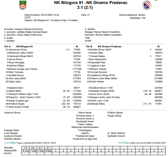 Igrač utakmice: Tomislav Pleić (Bilogora)