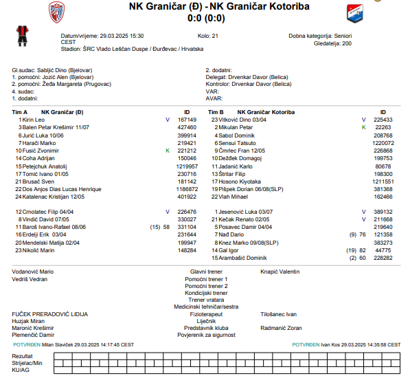 Igrač utakmice: Dino Vitković (Graničar Kotoriba)