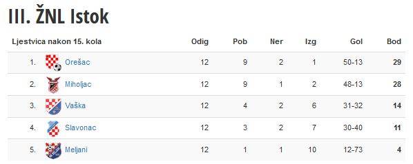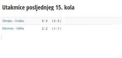 Odigrana su oba dvoboja posljednjeg, 15. kola 3. ŽNL VPŽ Istok! U bitci za prvenstvo u derbiju pred 150 gledatelja u Gornjem Miholjcu snage su odmjerili lideri prvenstva Miholjac i Orešac te je trofej nakon remija podigao Orešac, dok u nedjeljnom susretu Slavonca i Vaške također nije bilo pobjednika!