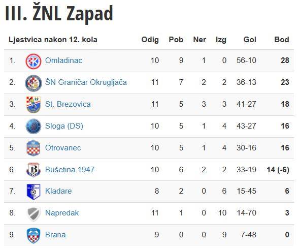 S tri subotnja susreta kompletirano je dvanaesto kolo uzbuđenja u 3. ŽNL VPŽ Zapad! Lider Omladinac iz Korije slavio je u derbiju sa Starom Brezovicom, Otrovanec je došao do petog prvenstvenog slavlja, dok su Graničar Okrugljača i Bušetina 1947 podijelili bodove!
