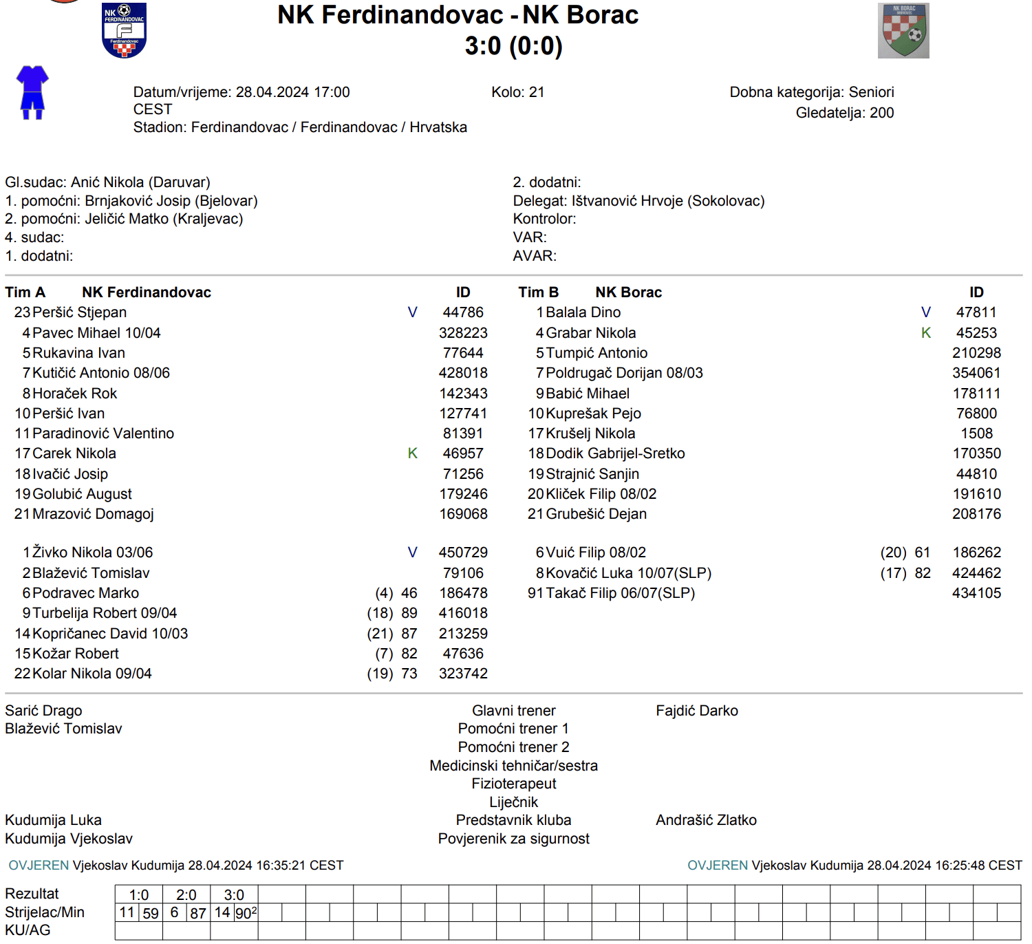 – Iako po rezultatu ne bi se reklo, bila je to dosta teško izborena pobjeda. Nakon izjednačenog prvog poluvremena, u drugom poluvremenu podižemo tempo igre i to nas nagrađuje pogotkom Paradinovića. Do kraja utakmice potvrđujemo pobjedu još s dva gola. Sada su naša glava usmjerena prema kup utakmici u srijedu, koja je od presudne važnosti za cjelokupnu sezonu. Stoga sam jako zadovoljan današnjim osvojenim bodovima, koji su izuzetno bitni u borbi za gornji dio tablice. – dodao je trener Ferdinandovca, Tomislav Blažević.