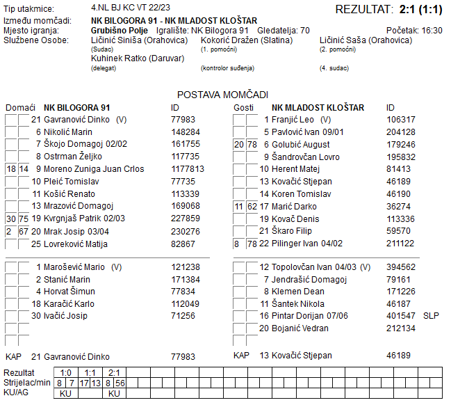 BILOGORA 91 – MLADOST KLOŠTAR PODRAVSKI 2:1
