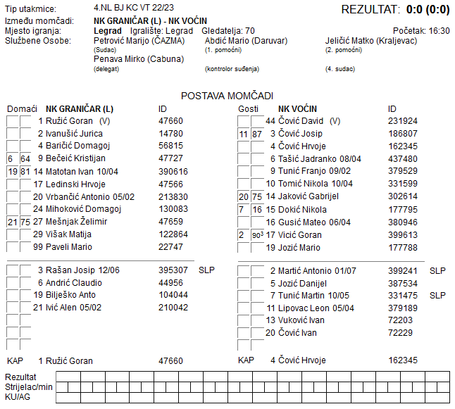 GRANIČAR – VOĆIN 0:0