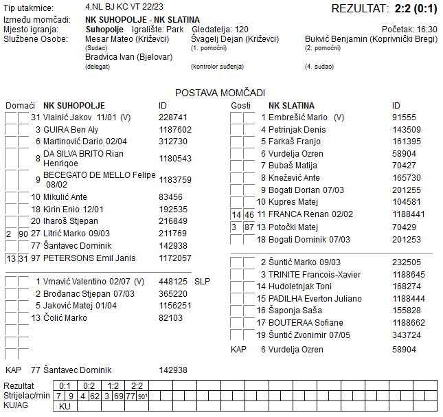 SUHOPOLJE – SLATINA 2:2