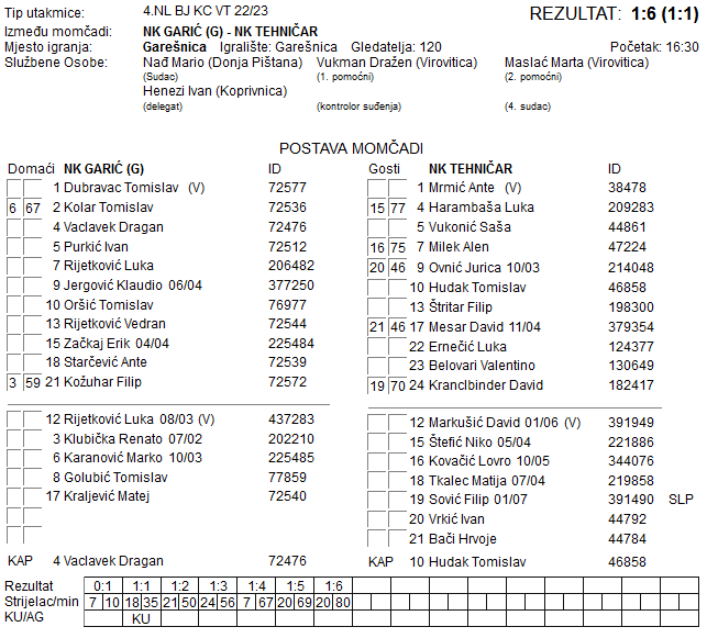 GARIĆ – TEHNIČAR 1:6