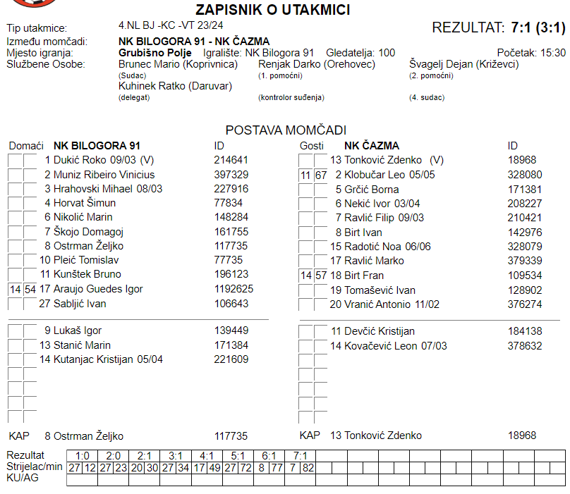 NK BILOGORA 91 – NK ČAZMA 7:1
