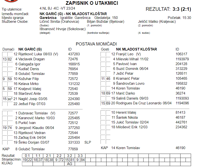 NK GARIĆ – NK MLADOST KLOŠTAR 3:3