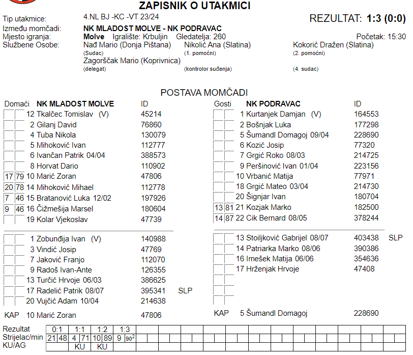 NK MLADOST MOLVE – NK PODRAVAC 1:3