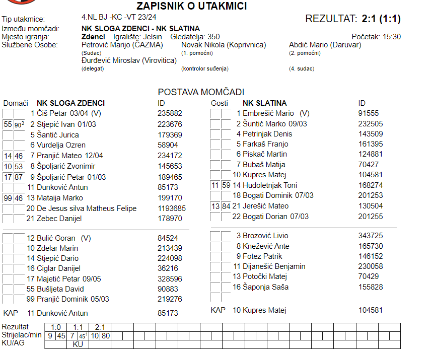 NK SLOGA ZDENCI – NK SLATINA 2:1